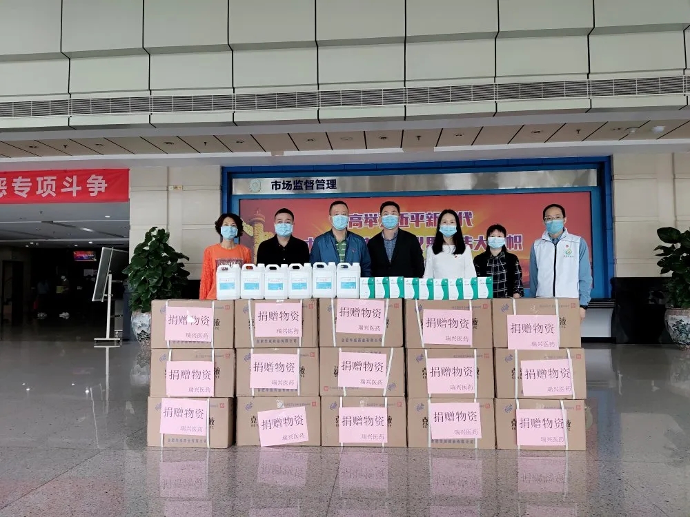 ▲瑞興醫(yī)藥捐贈(zèng)價(jià)值16萬元的消毒產(chǎn)品支援抗擊新冠肺炎疫情